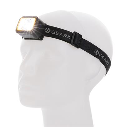 Linterna Frontal de Luz LED y COB Sostenible de ABS Reciclado con Certificado RCS para Personalizar con Resistencia al Agua y Polvo IPX4 y 6 Modos de Luz Gear X- 250 lúmenes