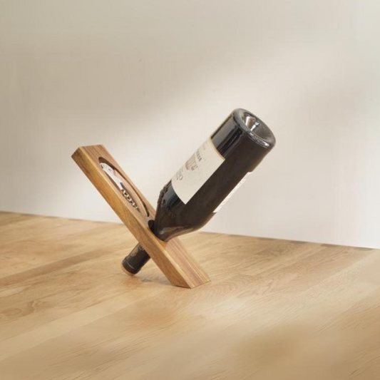 Juego de Soporte para Botellas de Vino Sostenible de Madera de Acacia con Certificado FSC para Personalizar con Abrebotellas Incluido Vino