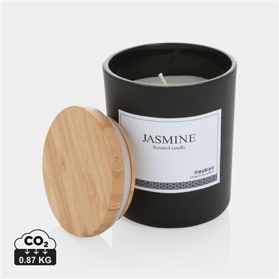 Vela Aromática de Jazmín Sostenible en Recipiente de Vidrio con Tapa de Bambú para Personalizar Especial Eventos Ukiyo Deluxe