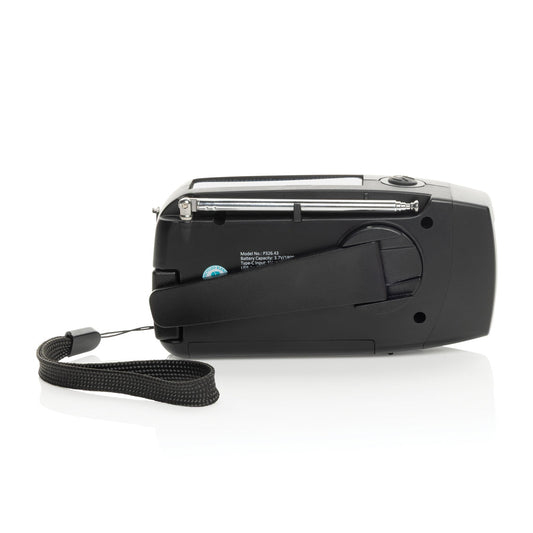 Radio de Emergencia con Linterna y PowerBank de Carga Solar y Manivela Sostenible de ABS Reciclado con Certificado RCS Personalizable RescueWave