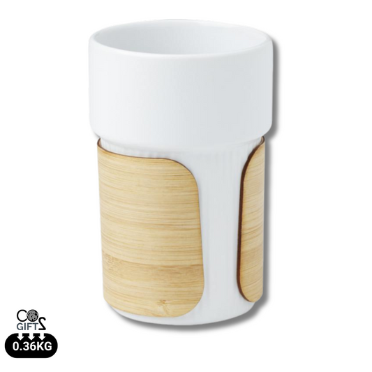 Vaso Sostenible de Cerámica con Funda Extraible de Bambú Personalizable Especial Oficina Fika - 340 ml