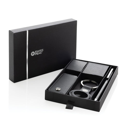 Set de Regalo de 3 piezas con Bolígrafo de Aluminio Reciclado, Llavero y Soporte para AirTag Ecológico de PU Reciclado con Certificado RCS para Personalizar Especial Welcome Pack Tula Lujo