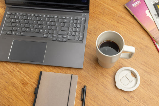Taza Sostenible de Cerámica con Tapa Antigoteo Apta para Microondas Personalizable Especial Oficinas - 490ml