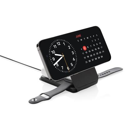 Cargador Inalámbrico 3 en 1 Magnético Sostenible de PU Reciclado Para Personalizar con Certificado RCS Swiss Peak 15W
