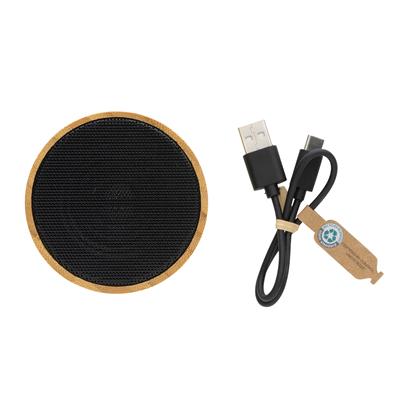 Altavoz inalámbrico de 3W fabricado con carcasa FSC® 100% bambú y ABS reciclado certificado RCS (Recycled Claim Standard).