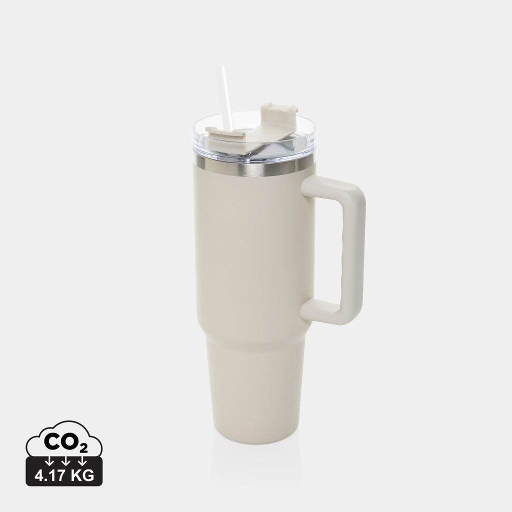 Taza Térmica Sostenible de Acero Inoxidable Reciclado con Certificado RCS con Pajita Reutilizable y Tapa Dosificadora en Amplia Para Personalizar Peakflow -1200ml
