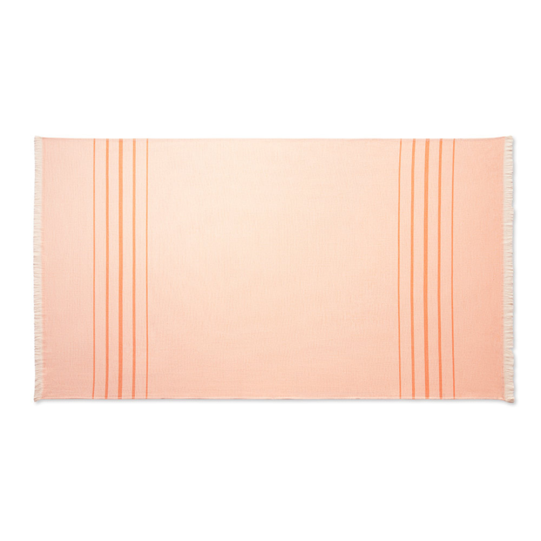 Toalla multifuncional sostenible (260 g/m²) elaborada con una combinación de 90% algodón ligero y resistente y 10% algodón reciclado. Su diseño versátil y su gran tamaño de 100 x 180 cm la convierten en el complemento ideal para diferentes usos: toalla de playa, manta de picnic o como regalo corporativo personalizado en eventos y promociones.
